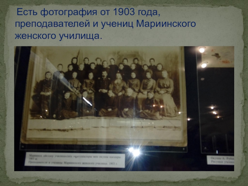 Слайд 11 Есть фотография от 1903 года, преподавателей и учениц Мариинского женского