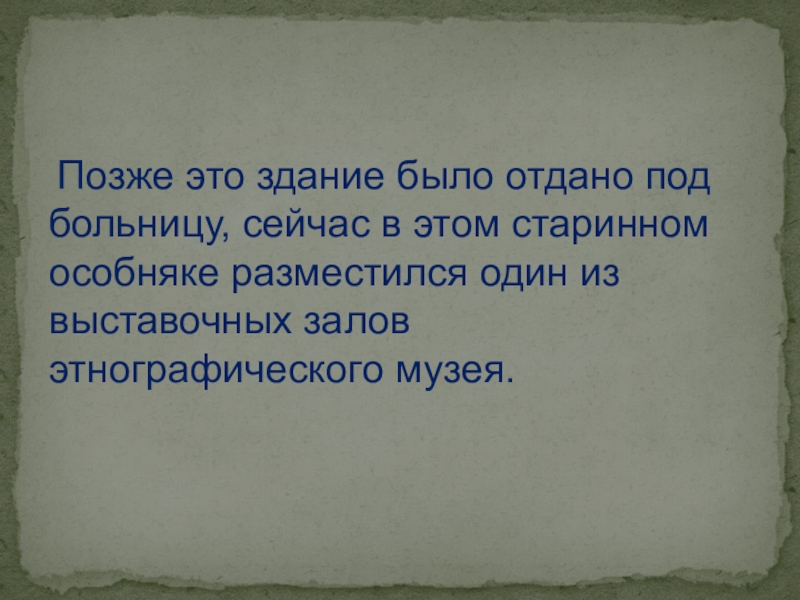 Слайд 13 Позже это здание было отдано под больницу, сейчас в этом