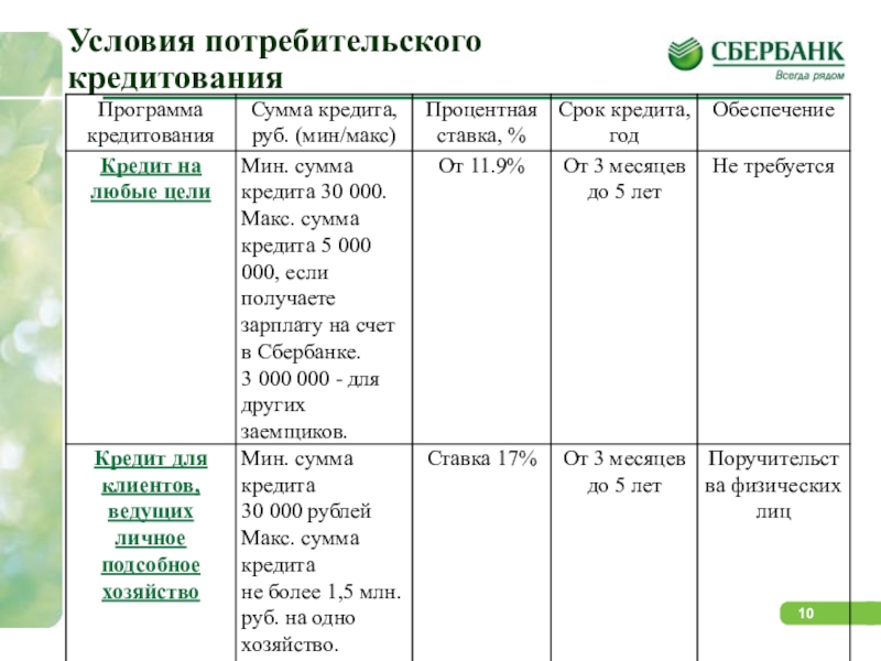 Слайд 9Программы кредитования физических лиц в ПАО Сбербанк