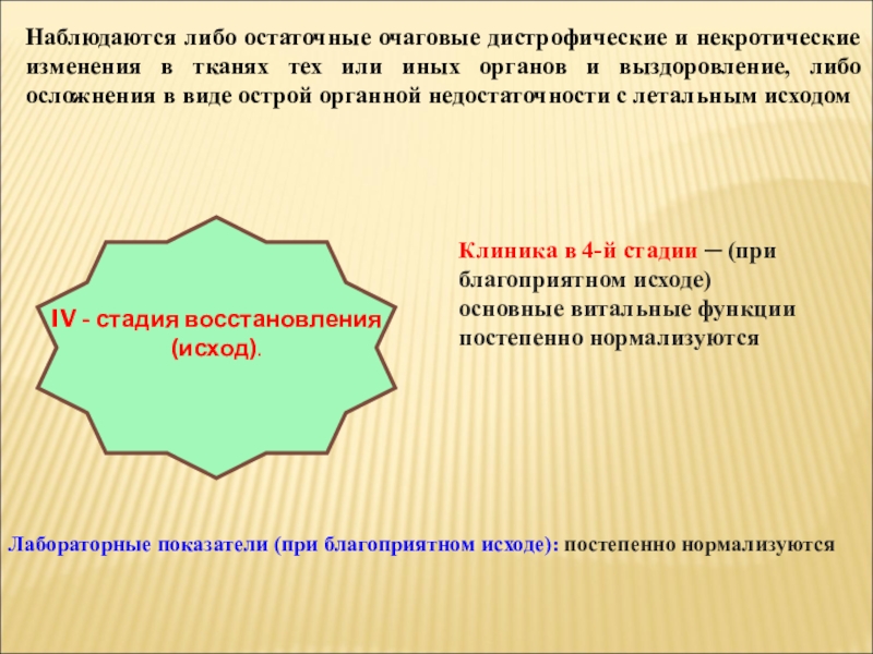 Клиника в 4-й стадии ─ (при благоприятном исходе) основные витальные функции постепенно нормализуются