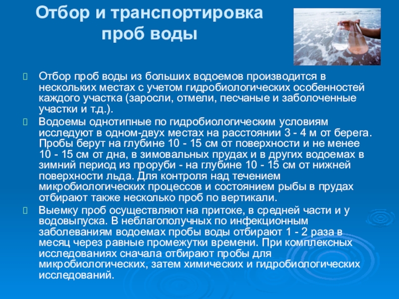 Слайд 10Отбор и транспортировка проб воды