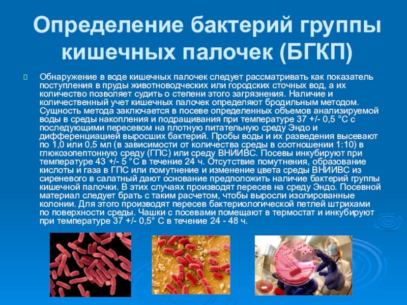 Слайд 17Определение бактерий группы кишечных палочек (БГКП)