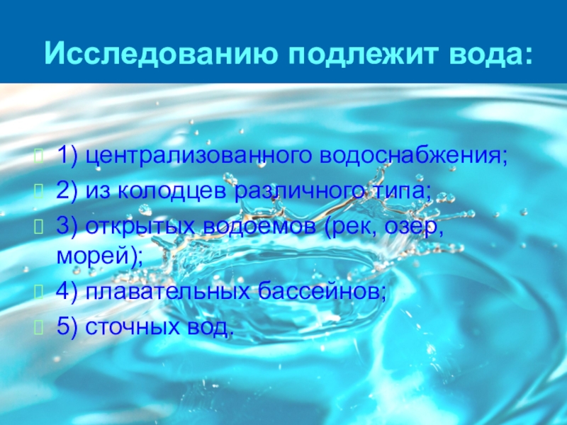 Слайд 2Исследованию подлежит вода: