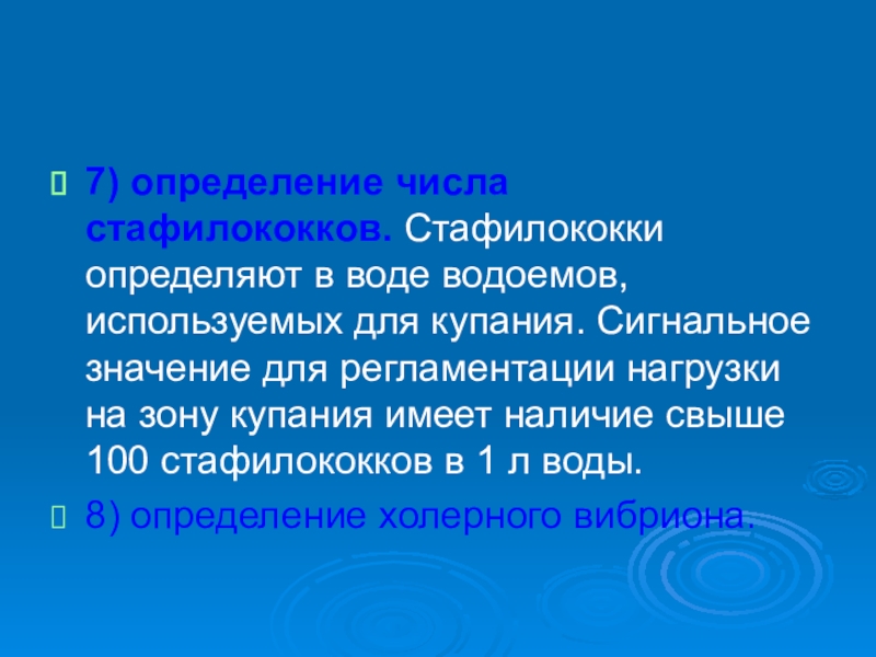 Слайд 97) определение числа стафилококков. Стафилококки определяют в воде водоемов, используемых для