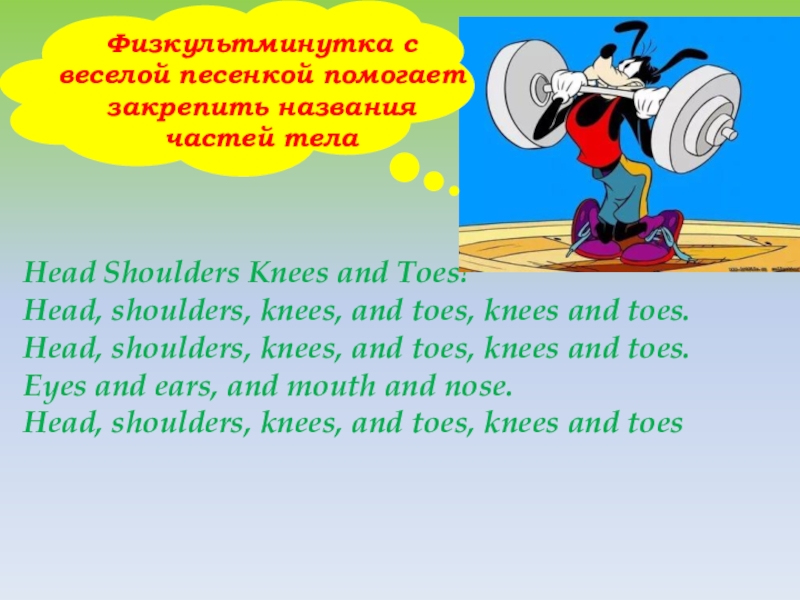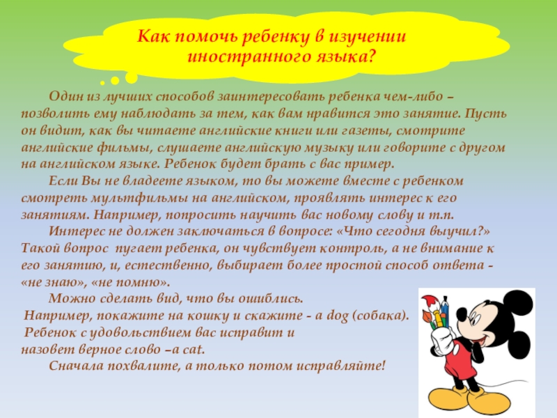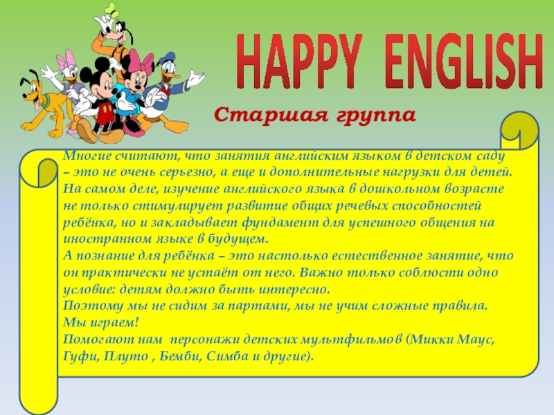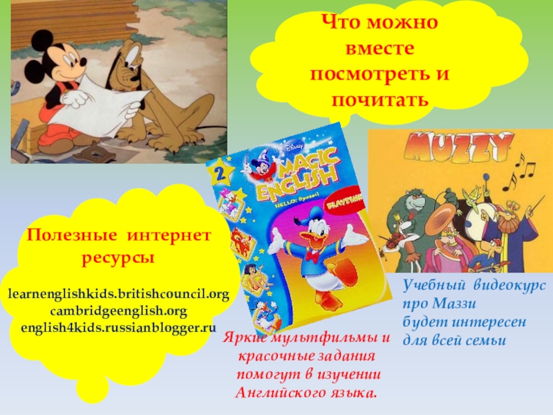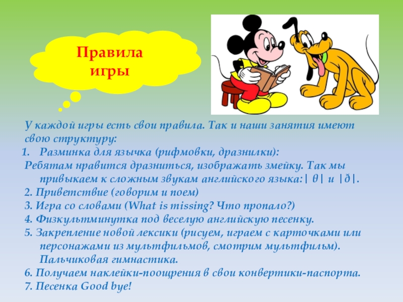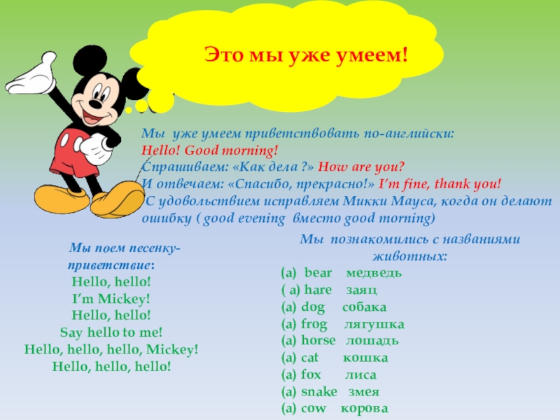 Помогают нам персонажи детских мультфильмов (Микки Маус, Гуфи, Плуто , Бемби, Симба и другие).