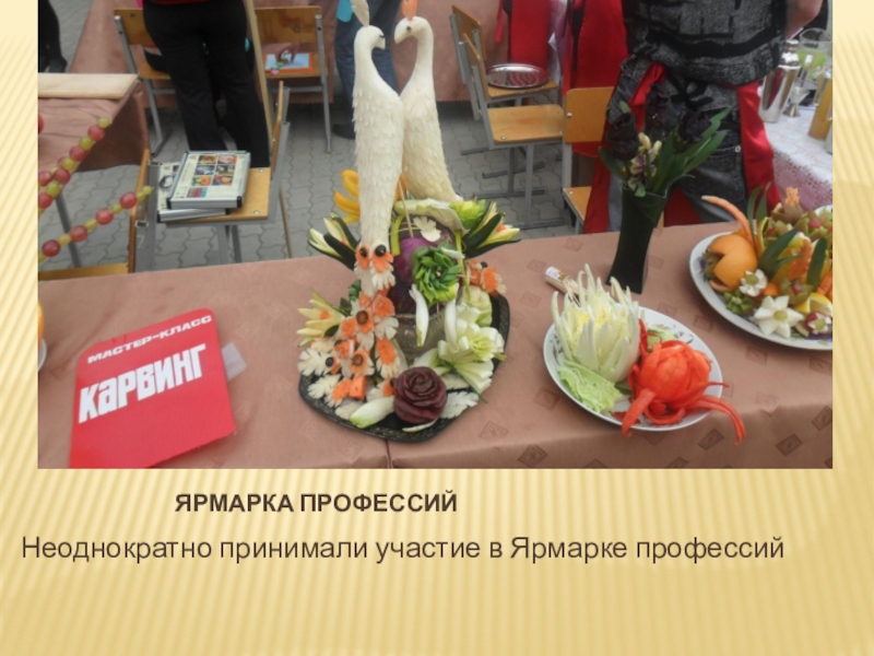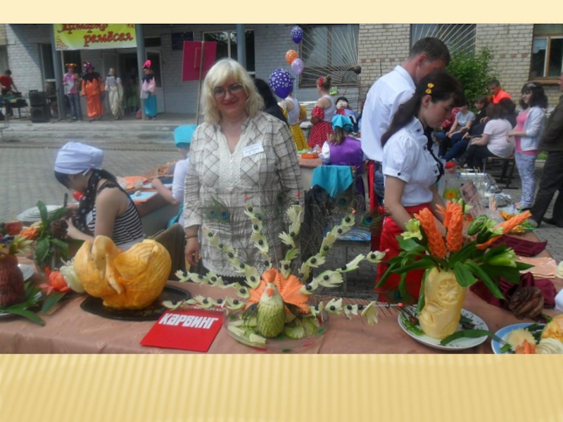 Слайд 11Во время обучения карвингу одновременно развиваются навыки сервировки стола и любовь