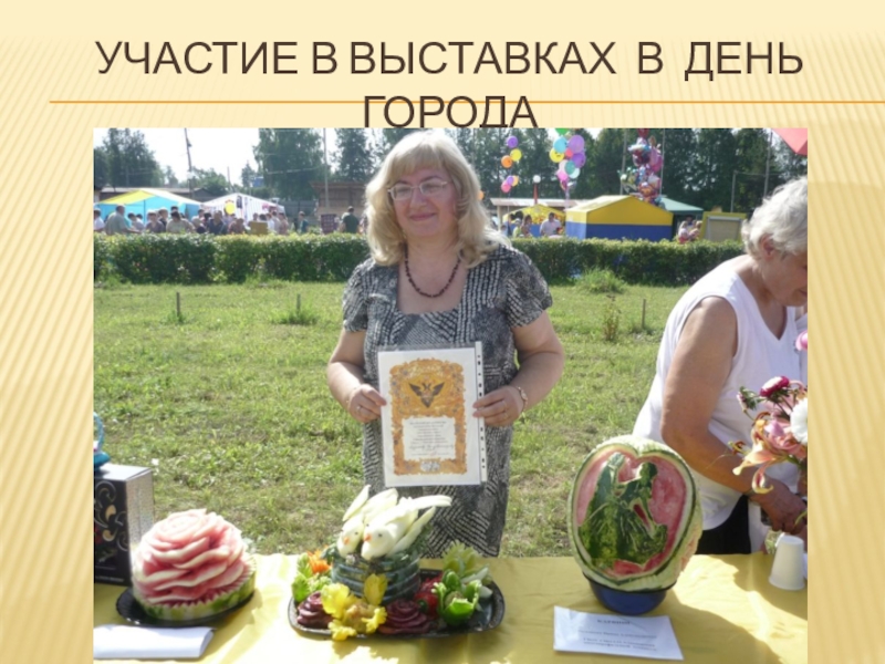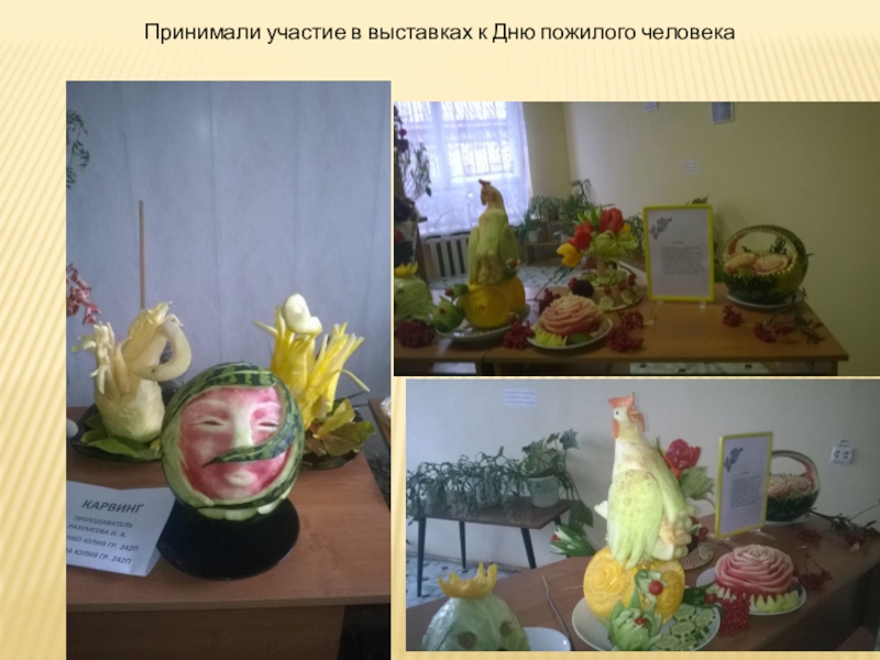 Слайд 25Принимали участие в выставках к Дню пожилого человека
