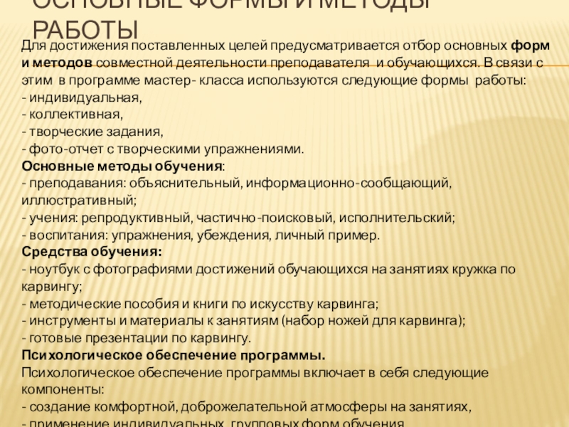 форм и методов совместной деятельности преподавателя и обучающихся. В связи с этим в программе мастер- класса используются следующие формы работы: