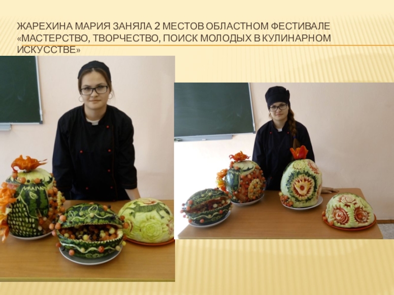Слайд 34Жарехина Мария заняла 2 местов областном фестивале «Мастерство, творчество, поиск молодых