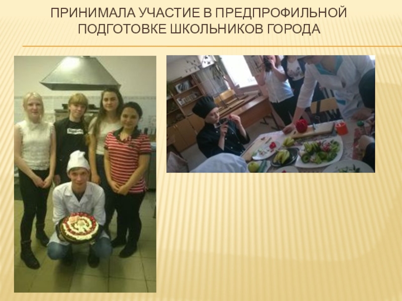 Слайд 15Принимала участие в предпрофильной подготовке школьников города