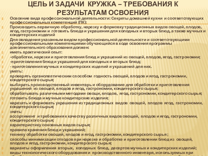 Слайд 2Цель и задачи кружка – требования к результатам освоения
