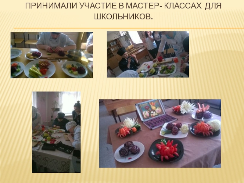 Слайд 14Принимали участие в мастер- классах для школьников.