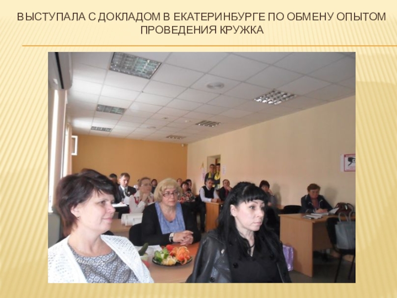 Слайд 20Выступала с докладом в Екатеринбурге по обмену опытом проведения кружка