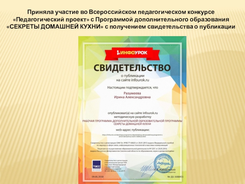 образования «СЕКРЕТЫ ДОМАШНЕЙ КУХНИ» с получением свидетельства о публикации