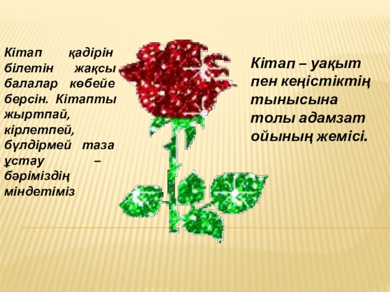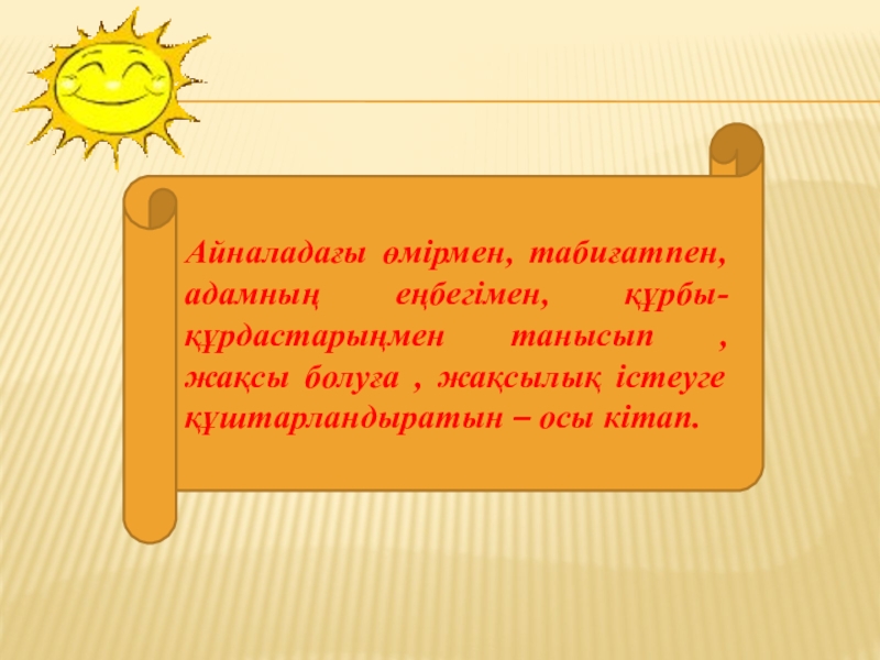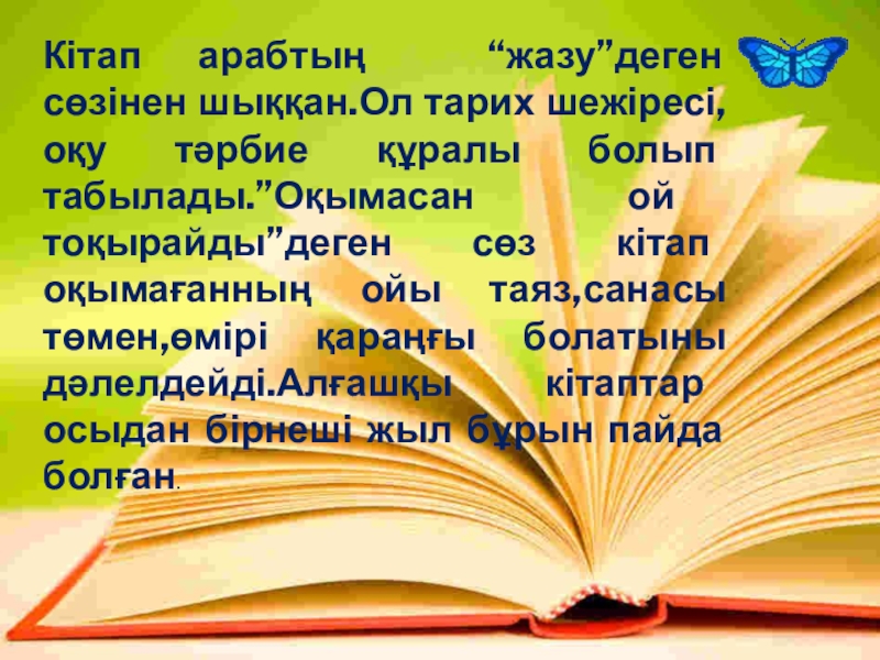 Кітап – уақыт пен кеңістіктің тынысына толы адамзат ойының жемісі.