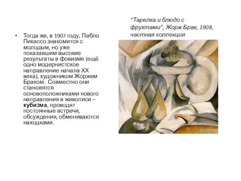 “Тарелка и блюдо с фруктами”, Жорж Брак, 1908, частная коллекция