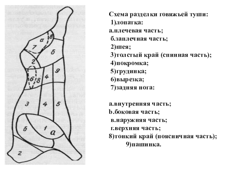 В результате обвалки и зачистки лопатки получаются: плечевая часть — мышца клинообразной формы, заплечная часть — две мышцы продолговатой формы, соединенные между собой.