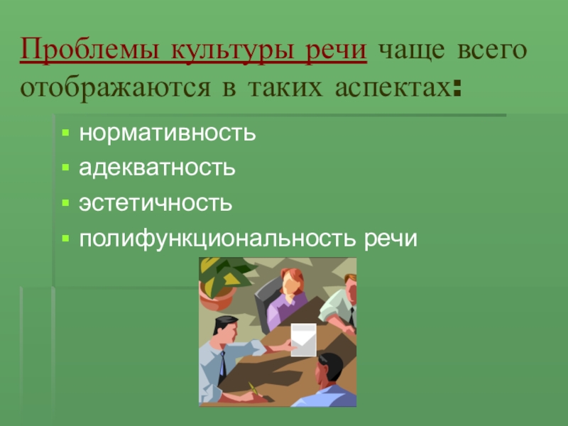 Слайд 5Проблемы культуры речи чаще всего отображаются в таких аспектах:
