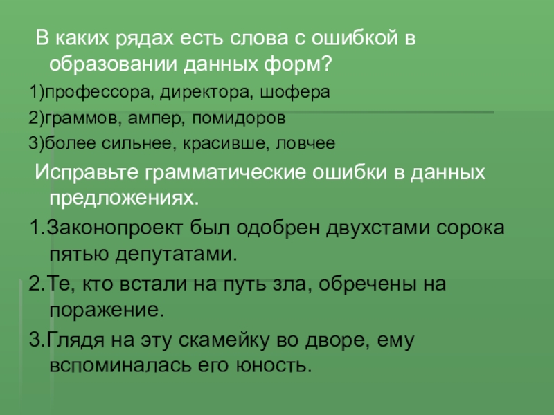 Слайд 18 В каких рядах есть слова с ошибкой в образовании данных