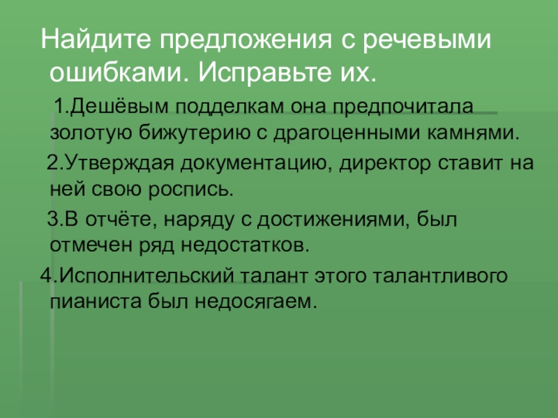 Слайд 17 Найдите предложения с речевыми ошибками. Исправьте их.