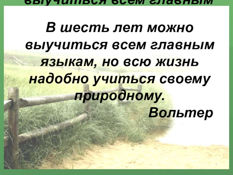 Слайд 4В шесть лет можно выучиться всем главным языкам, но всю жизнь