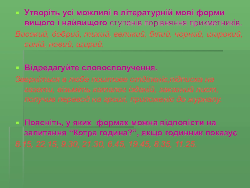 Слайд 13Утворіть усі можливі в літературній мові форми вищого і найвищого ступенів
