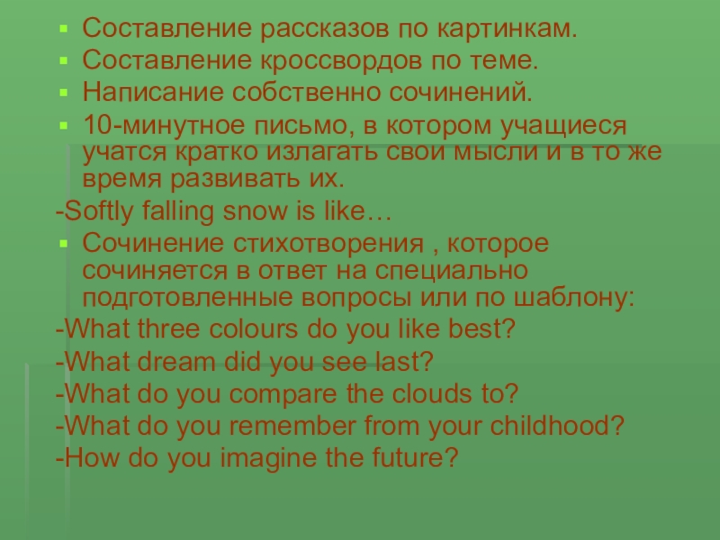 Сочинение стихотворения , которое сочиняется в ответ на специально подготовленные вопросы или по шаблону: