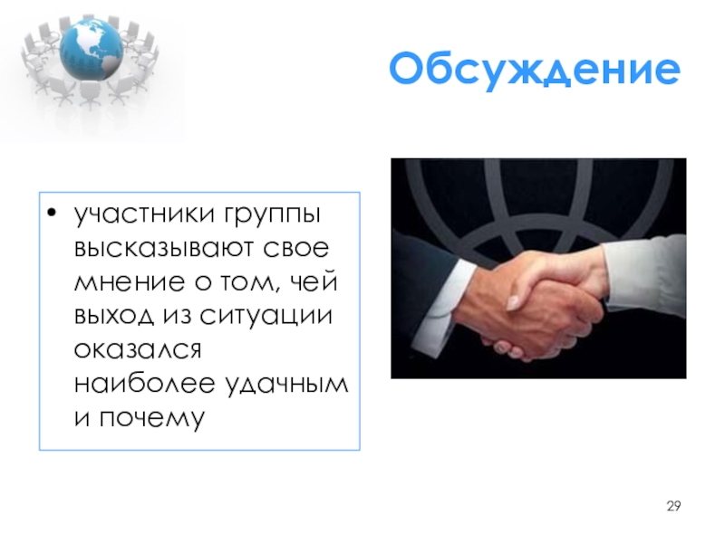 участники группы высказывают свое мнение о том, чей выход из ситуации
