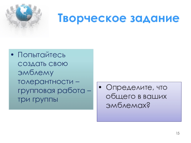 Попытайтесь создать свою эмблему толерантности – групповая работа – три