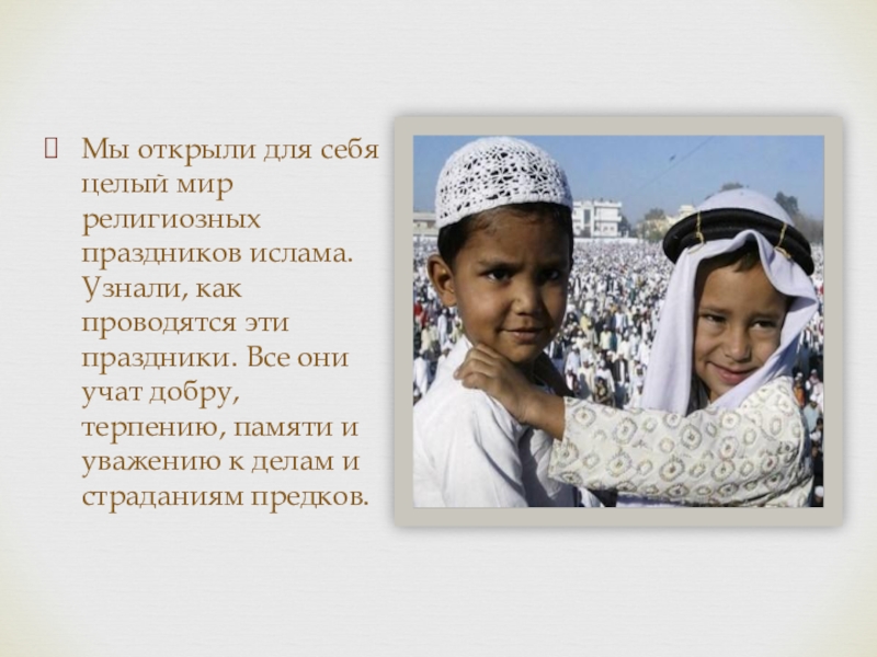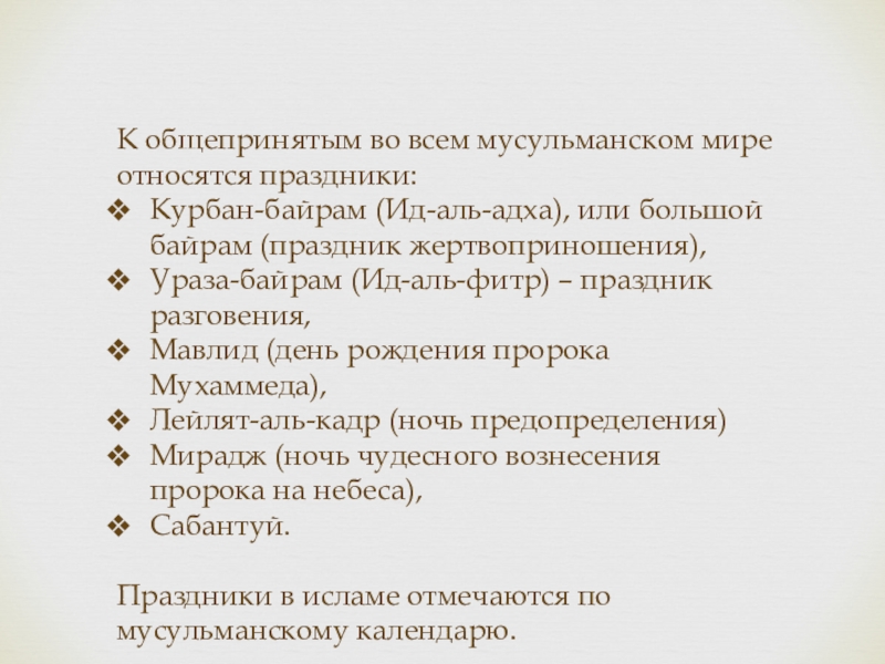 Отмечаетсяв честь окончания поста в месяц Рамадан. Начал отмечаться в 624 году.