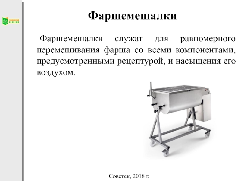 Фаршемешалки служат для равномерного перемешивания фарша со всеми компонентами, предусмотренными рецептурой, и насыщения его воздухом.