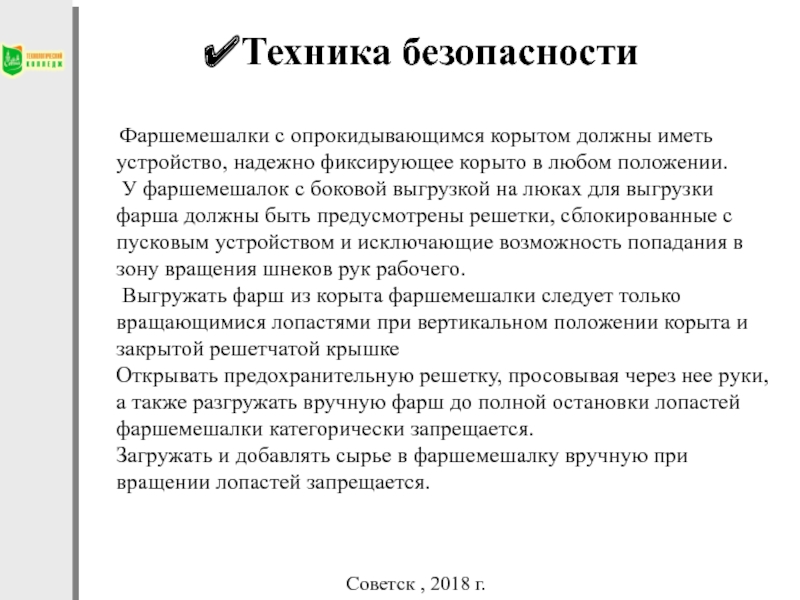 Выгружать фарш из корыта фаршемешалки следует только вращающимися лопастями при вертикальном положении корыта и закрытой решетчатой крышке