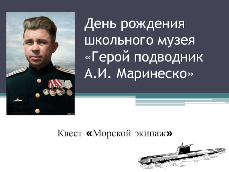 Слайд 1День рождения школьного музея «Герой подводник А.И. Маринеско»