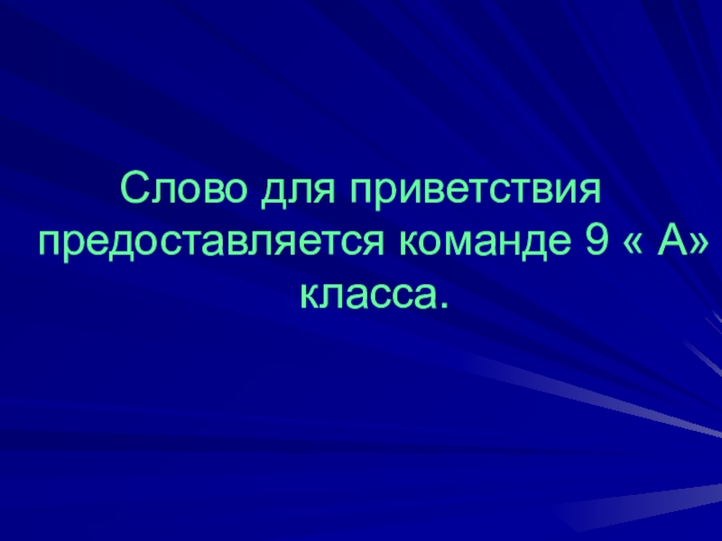 Слайд 7Слово для приветствия предоставляется команде 9 « А» класса.