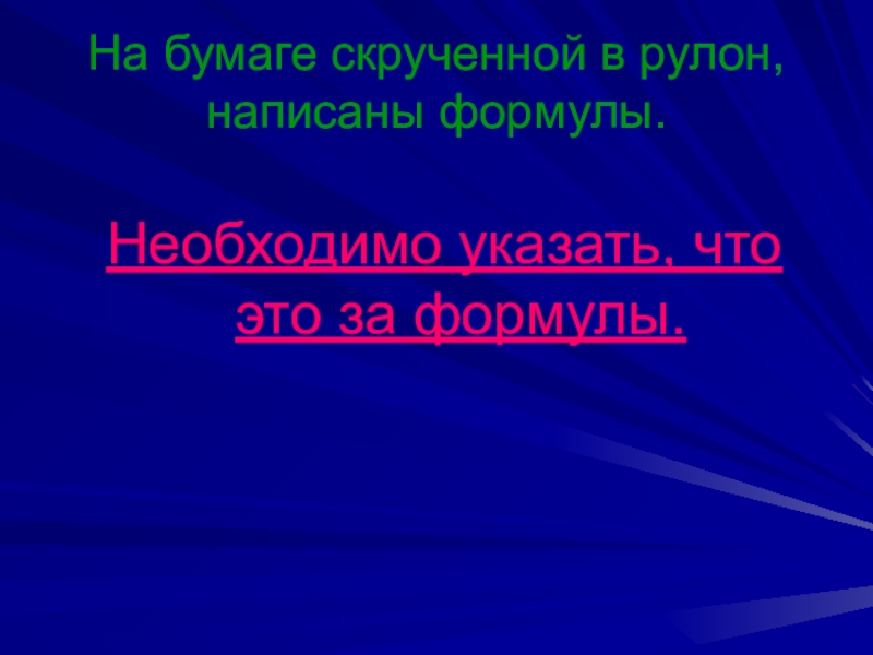 Слайд 26На бумаге скрученной в рулон, написаны формулы.