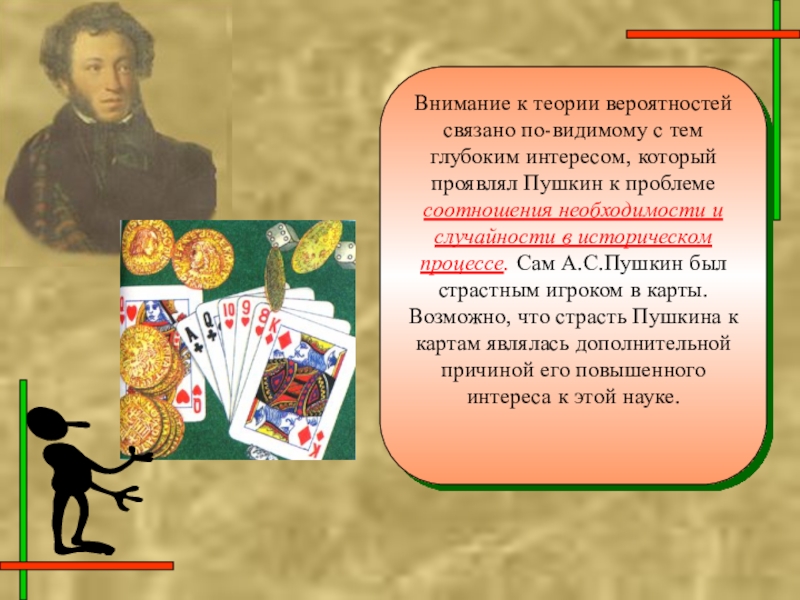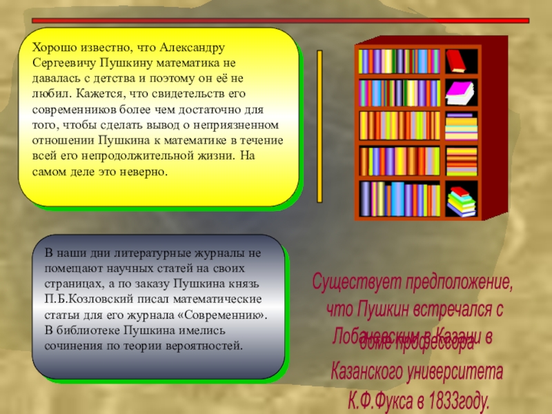 Хорошо известно, что Александру Сергеевичу Пушкину математика не давалась с детства и поэтому он её не любил. Кажется, что свидетельств его современников более чем достаточно для того, чтобы сделать вывод о неприязненном отношении Пушкина к математике в течение всей его непродолжительной жизни. На самом деле это неверно.