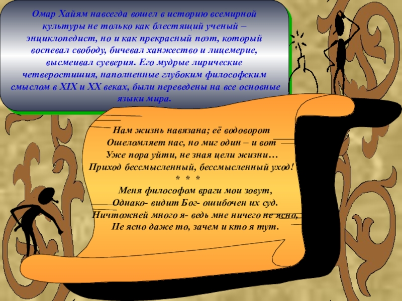 Одним из крупнейших математиков, который был замечательным поэтом, является Омар Хайям.