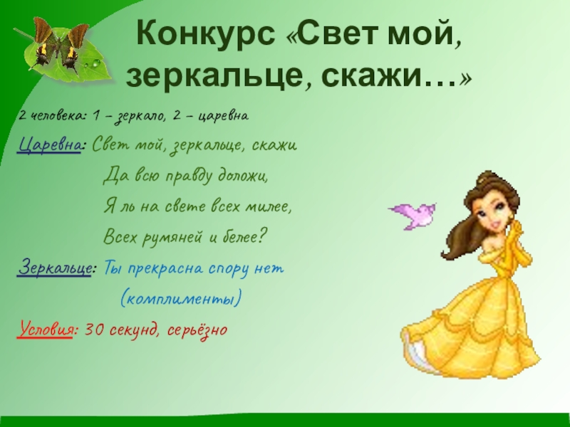 Слайд 14Конкурс «Свет мой, зеркальце, скажи…»