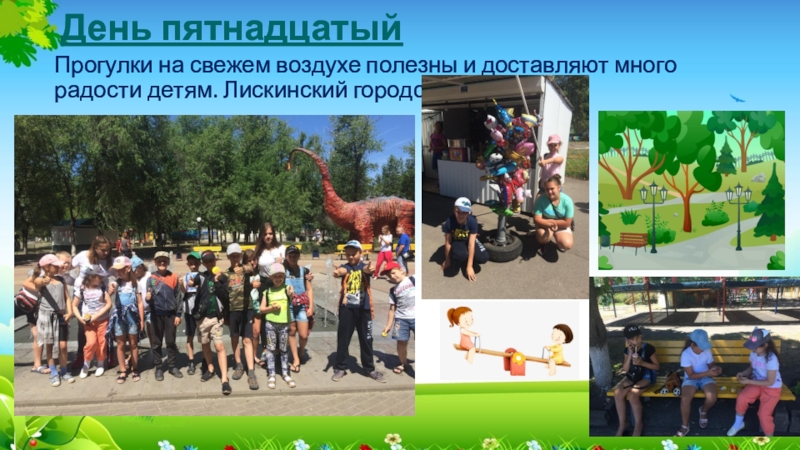День пятнадцатыйПрогулки на свежем воздухе полезны и доставляют много радости детям. Лискинский городской парк.