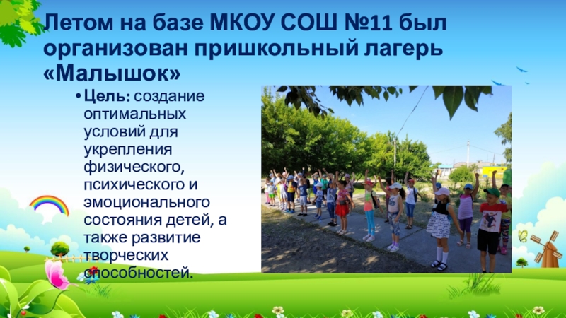 Слайд 2Летом на базе МКОУ СОШ №11 был организован пришкольный лагерь «Малышок»