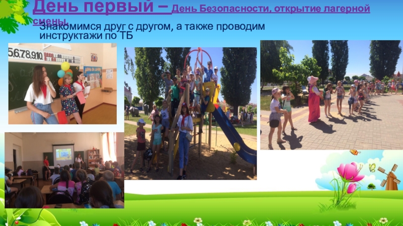 Слайд 4День первый – День Безопасности, открытие лагерной смены.
