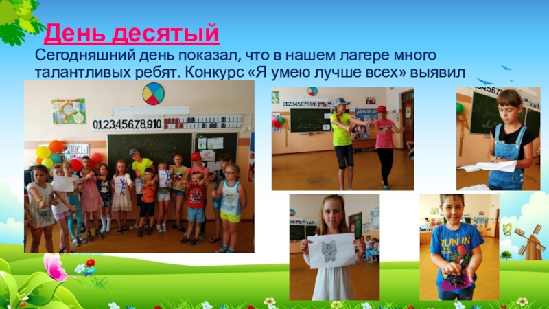 День десятыйСегодняшний день показал, что в нашем лагере много талантливых ребят. Конкурс «Я умею лучше всех» выявил