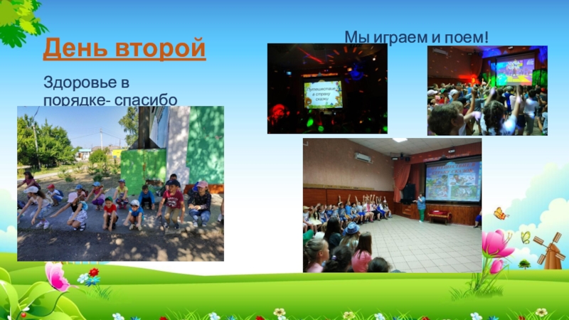 День второйЗдоровье в порядке- спасибо зарядке!Мы играем и поем!