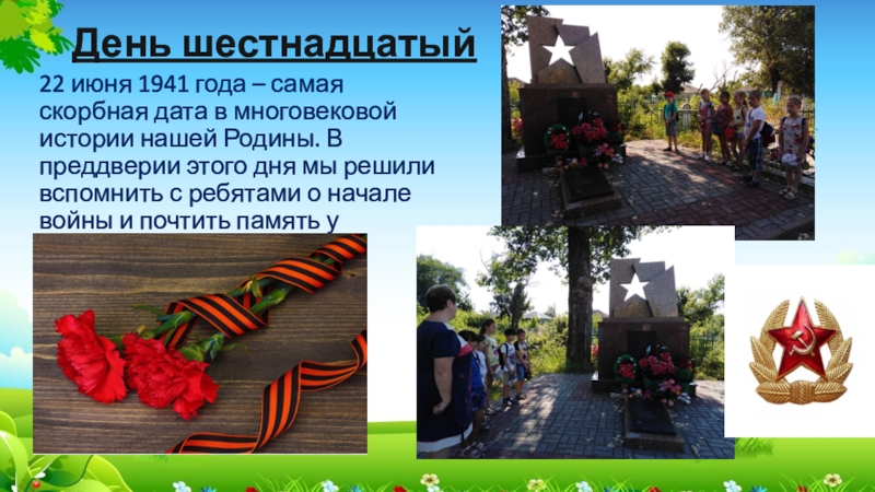 День шестнадцатый22 июня 1941 года – самая скорбная дата в многовековой истории нашей Родины. В преддверии этого