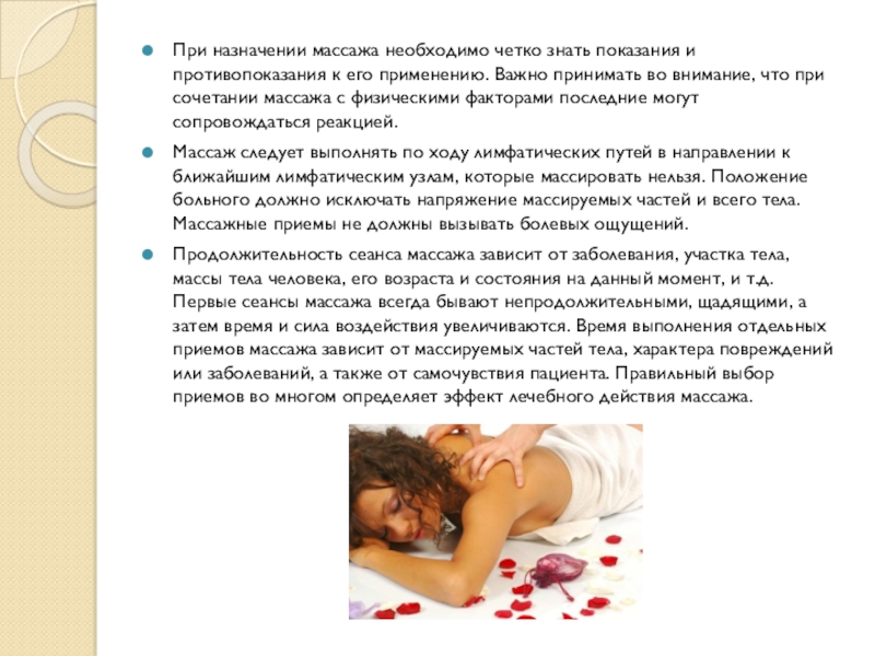 Слайд 10При назначении массажа необходимо четко знать показания и противопоказания к его