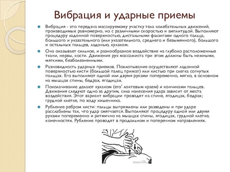 Слайд 15Вибрация и ударные приемы
