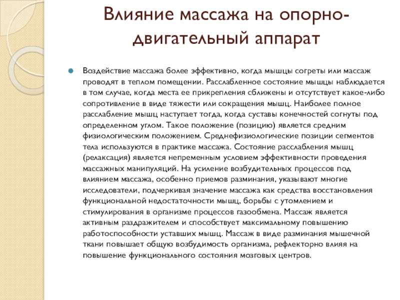 Слайд 7Влияние массажа на опорно-двигательный аппарат