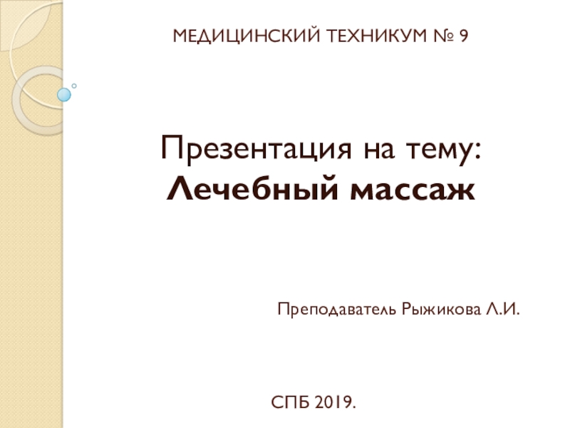 Презентация на тему: Лечебный массаж