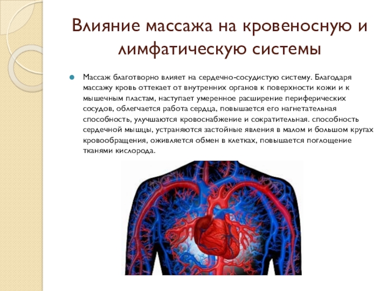 Слайд 5Влияние массажа на кровеносную и лимфатическую системы