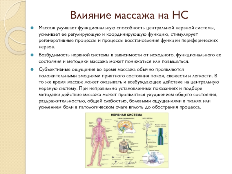 Слайд 6Влияние массажа на НС